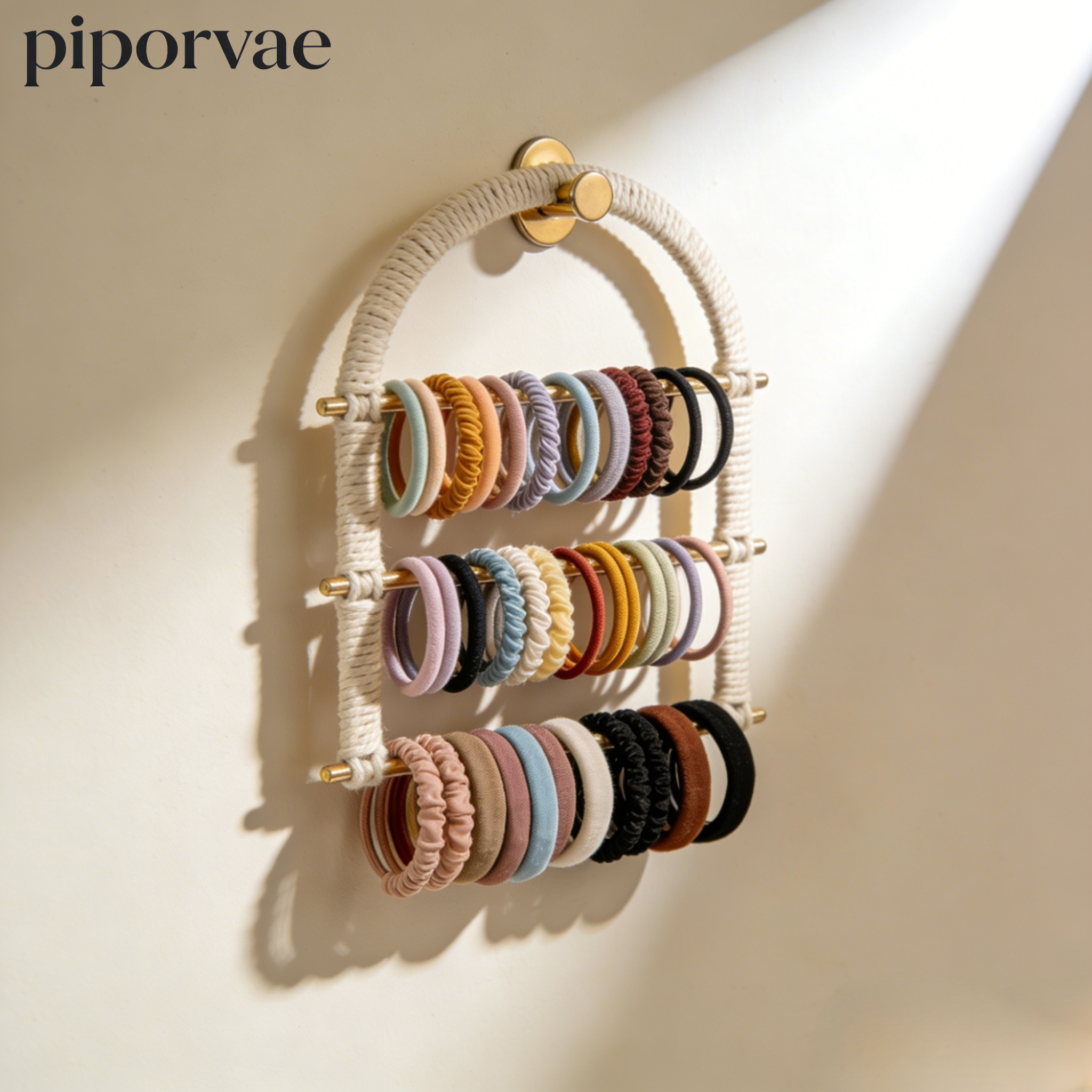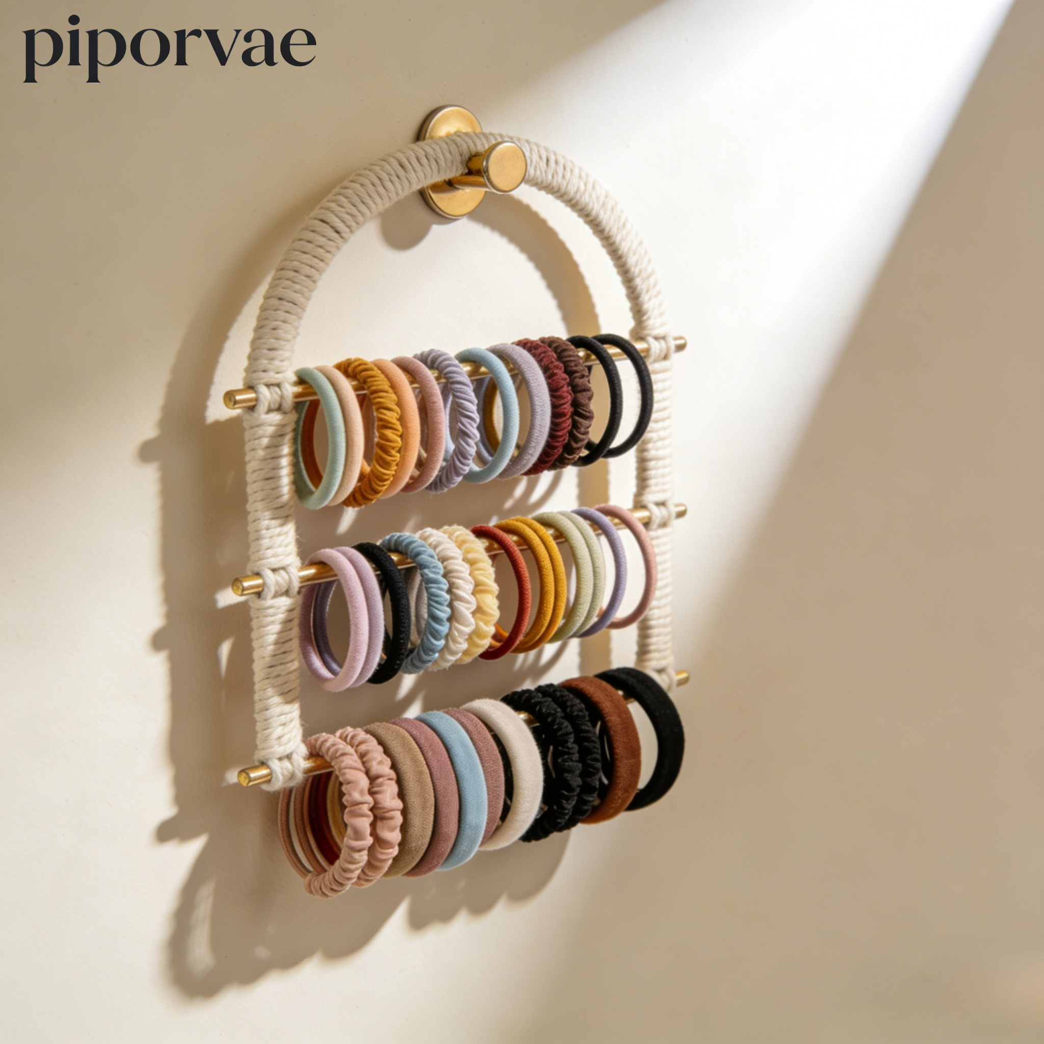 ● 壁掛編織髮圈架設計精巧,讓髮圈、髮飾一目了然,輕鬆收納不凌亂,打造美觀又實用的空間佈置。